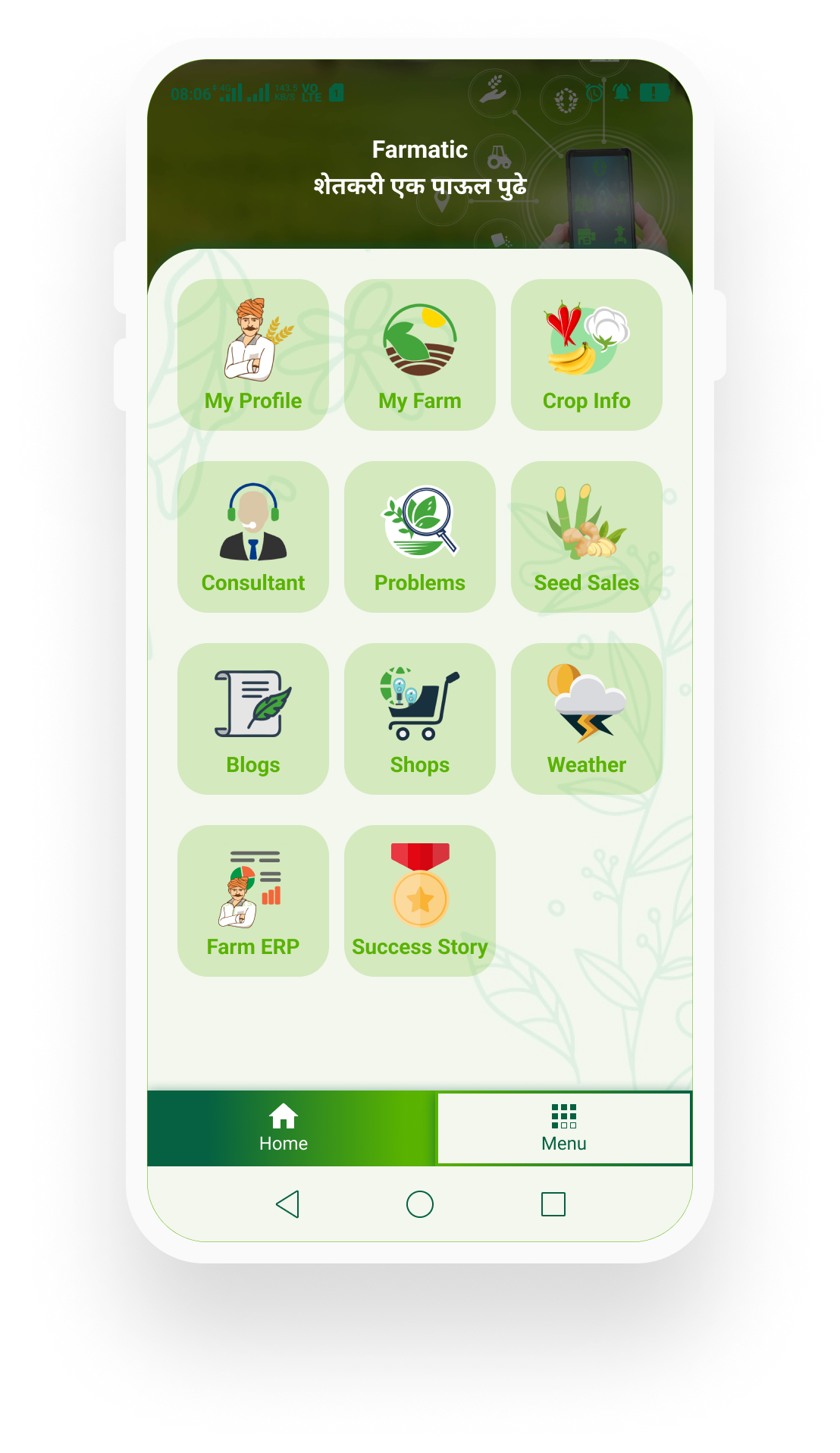 Get the App and enjoy more than 15 premium services for free. Farmatic offers you, personalized consultation with agricultural experts, crop information, query-based problem identification, seed sell channel, blogging, and farming instruments shopping, upto date APMC rates, and soil & water testing, are some of them.
